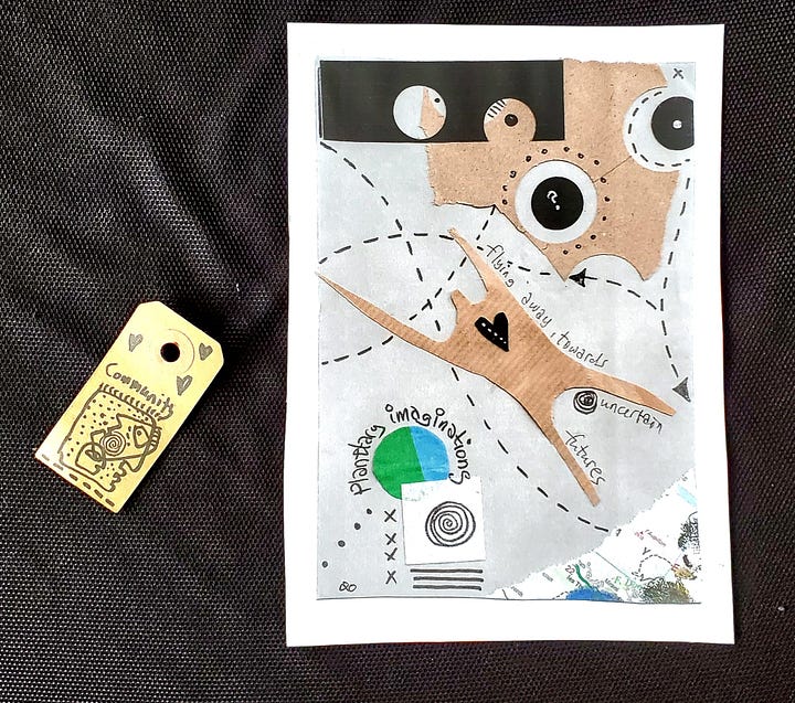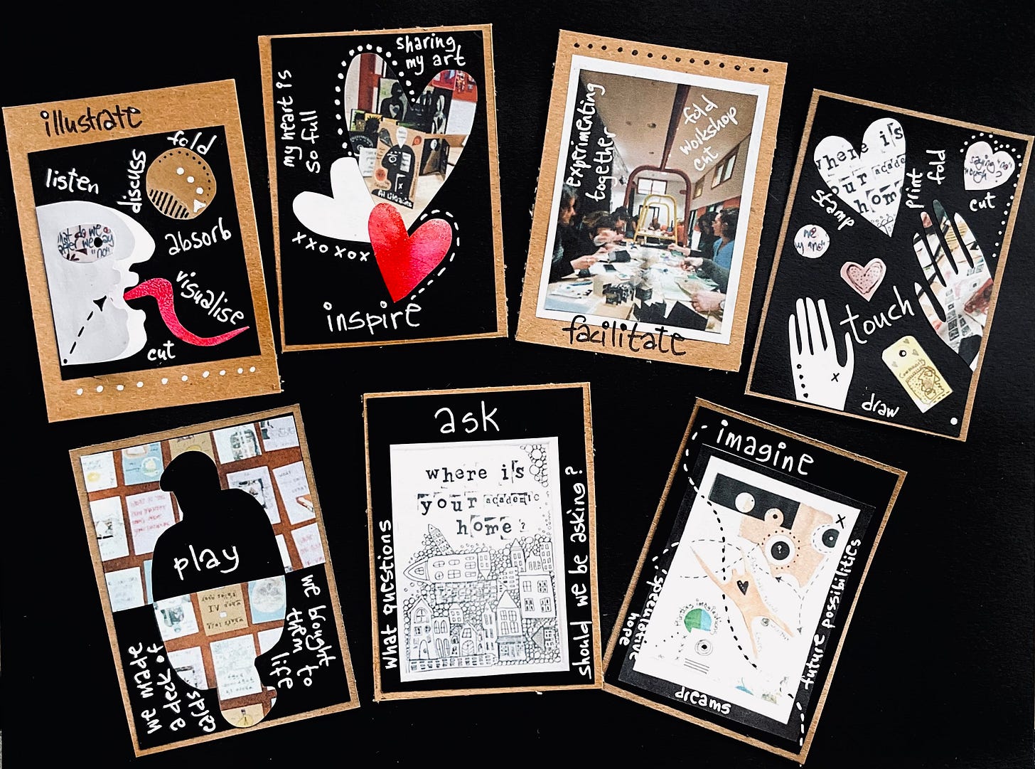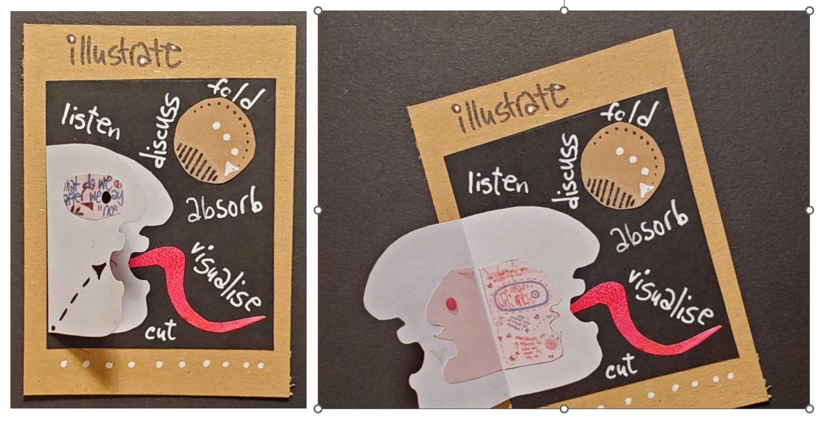 The second week of the #100dayproject was all about reflecting on the “Workshops on Workshopping” in Utrecht - an event, organised by the Skagen Institute on Transgressive Methods and the Futures+Literacies+Methods Lab. So, I got my papers and art supplies, and arrived to meet a most amazing crowd of colleagues old and new - and a room full of more art supplies. It was not a typical academic conference, nor was it an art retreat. It was a weird, buzzing, inspiring mixture of the above and much more. We crafted visions, explored literacies, imagined futures. We cut papers, built legos, wrote poems, took turns talking, sat in a circle, lay on the floor, stamped and folded, put together and took apart, exlored and imagined some more. My cards for the second week of the#100dayproject2026 is a tribute to this amazing event. A visual answer to the question: what could I/ we do? And how does the process look and feel like?